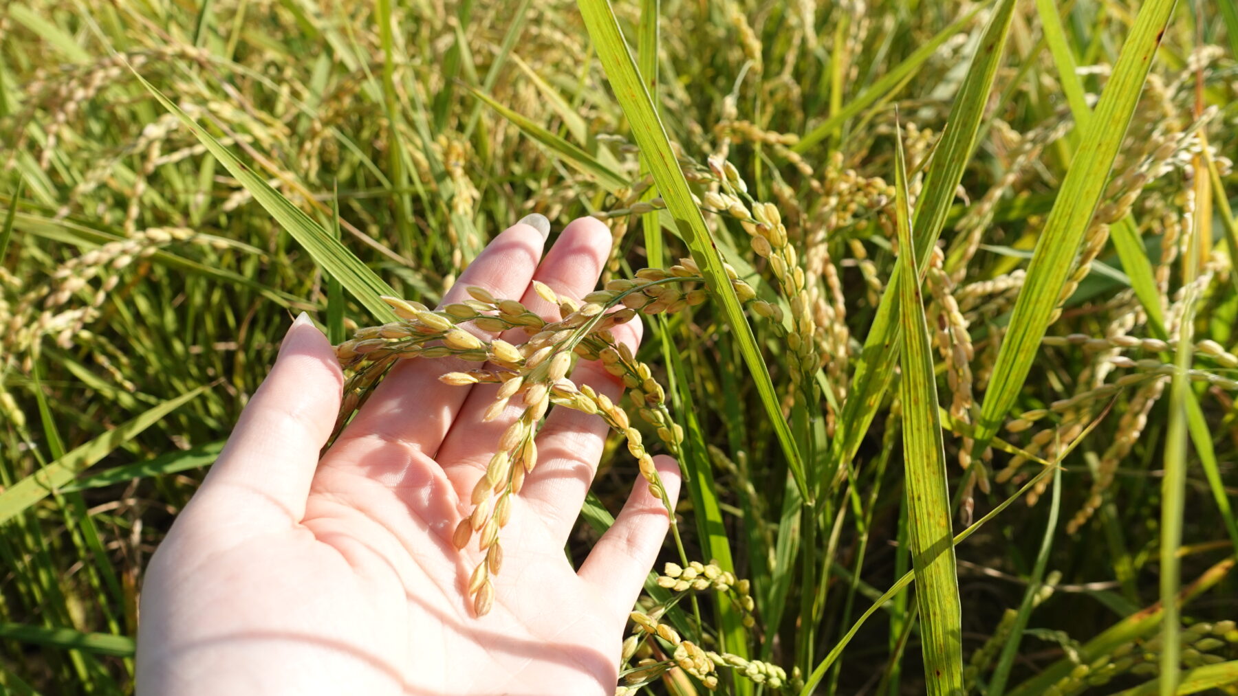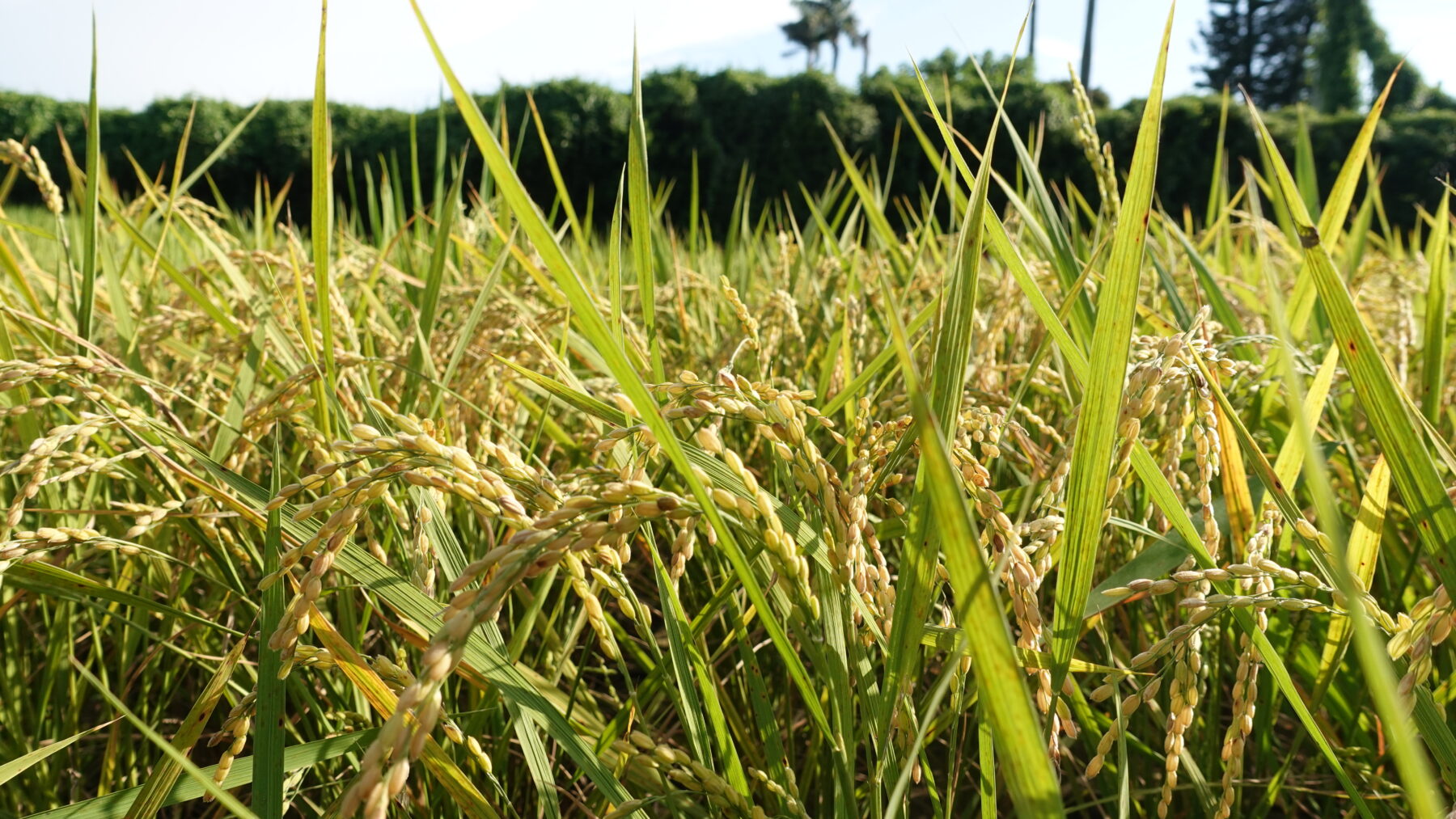 金黃色的稻穗隨風搖曳,一粒粒稻穀沉甸甸地垂下了頭。看著這片準備收割的稻田,彷彿能聞到電鍋裡米飯的香氣。大湖村的孩子真幸福——每天睜開眼就能看到稻浪翻騰的風景。