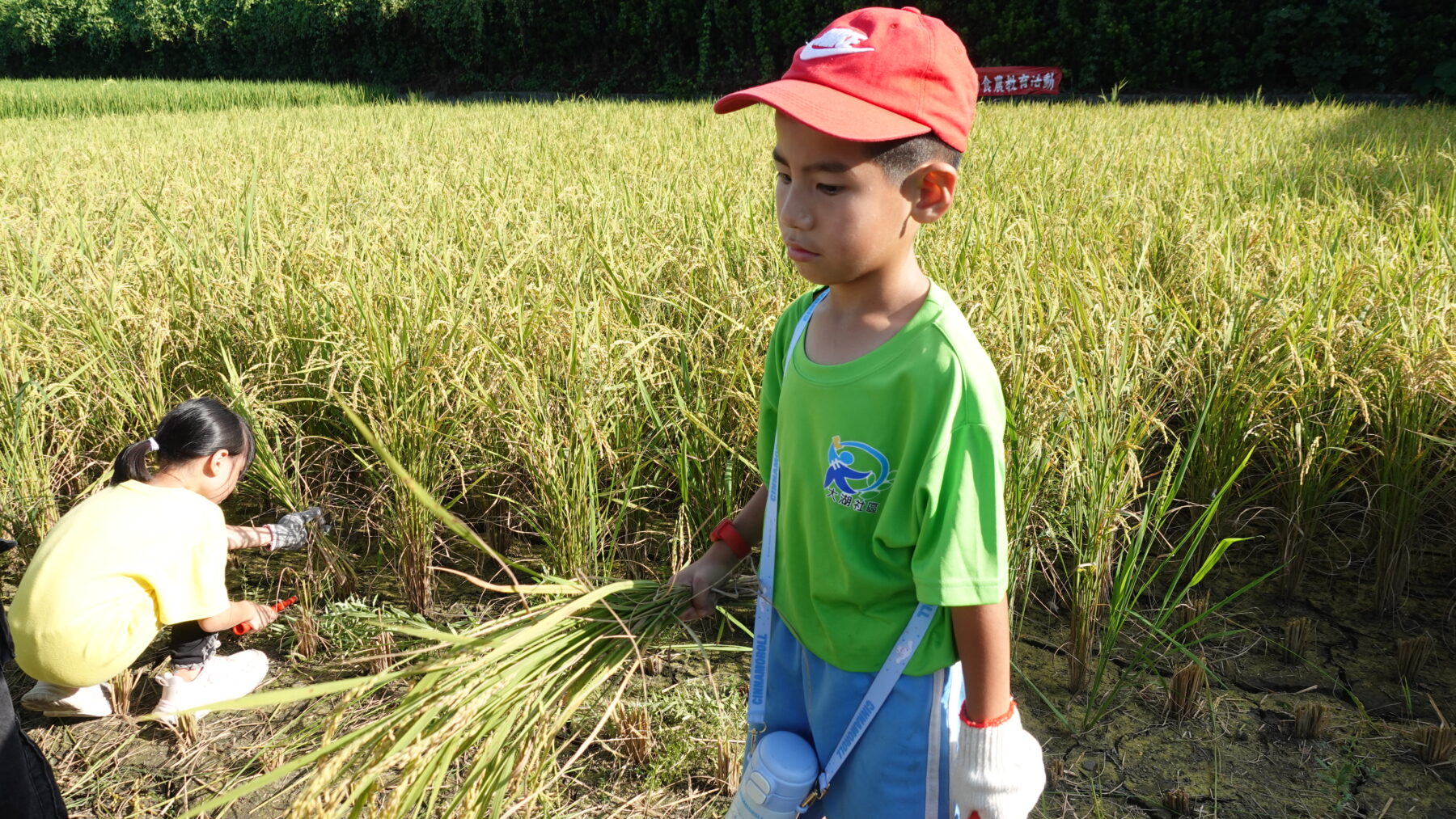 今天,中國信託慈善基金會「臺灣夢—兒少社區陪伴扎根計畫」的成果發表會就在這裡舉行。穿著象徵稻田的青綠色衣服,村民與志工們在艷陽下忙進忙出,從南投、高雄、新北來的孩子們,也一起走進田間,體驗「粒粒皆辛苦」的真實滋味。