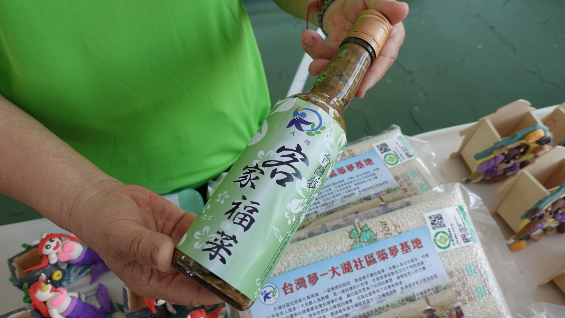 稻米收成後,秋風起,田裡就換上芥菜的身影。那時的社區裡總飄著鹽漬芥菜的香味。在大湖村,鹽漬芥菜又稱作福菜,是比起酸菜更濃郁的味道。