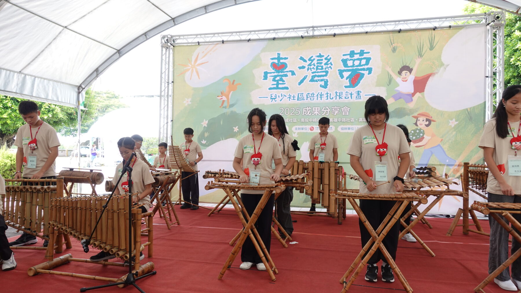 除了主辦的大湖社區,來自新北的福成社區則由孩子介紹當地常見動物的生態;南投中崎社區透過竹製樂器共同合奏一首首美妙的樂曲;高雄文賢社區也帶來車鼓陣的精采表演,各地的社區夥伴們帶著各自的在地風景一起響應。